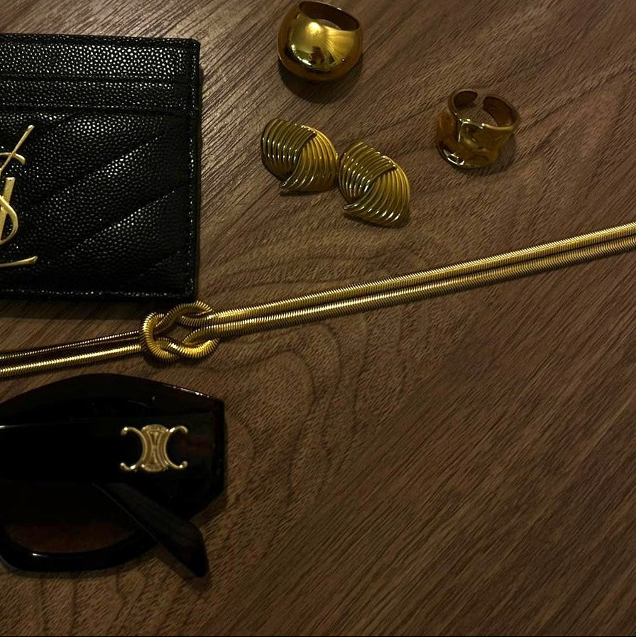 Denna choker är experttillverkad i rostfritt stål med en 18K guldbeläggning, vilket ger både hållbarhet och en slående finish. Dess dubbla ormliknande design erbjuder ett djärvt iögonfallande smycke som kompletterar en rad stilar, medan de högkvalitativa materialen säkerställer långvarigt slitage och motståndskraft mot missfärgningar. Perfekt för dig som söker en sofistikerad, edgy accessoar med en professionell touch.
